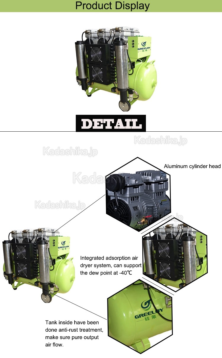 Greeloy® GA-83Y 歯科静音 エアコンプレッサー ドライヤー付き