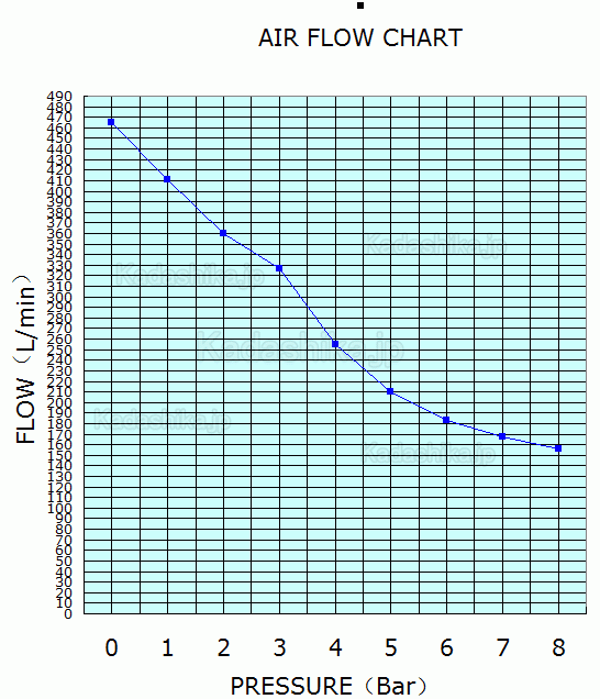 空気流量:465L/min at 0 bar(16.6 cfm)
