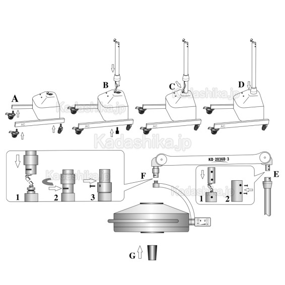KD-2036D-3 歯科手術用無影灯 108W 36 LED個ライト (土台付き、スタンド式)