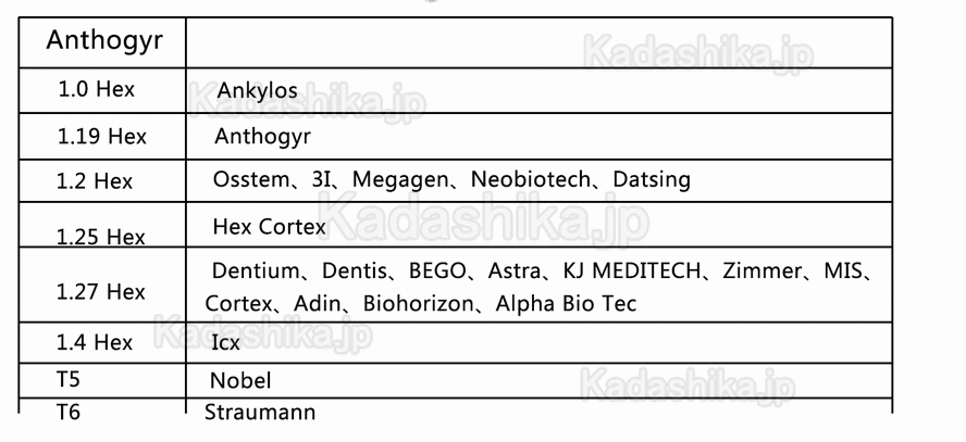 ドライバー:1.27 DEN(長+短) DEN、BEGO、ZIMMER、AST、COR、ADIN、ABに適用