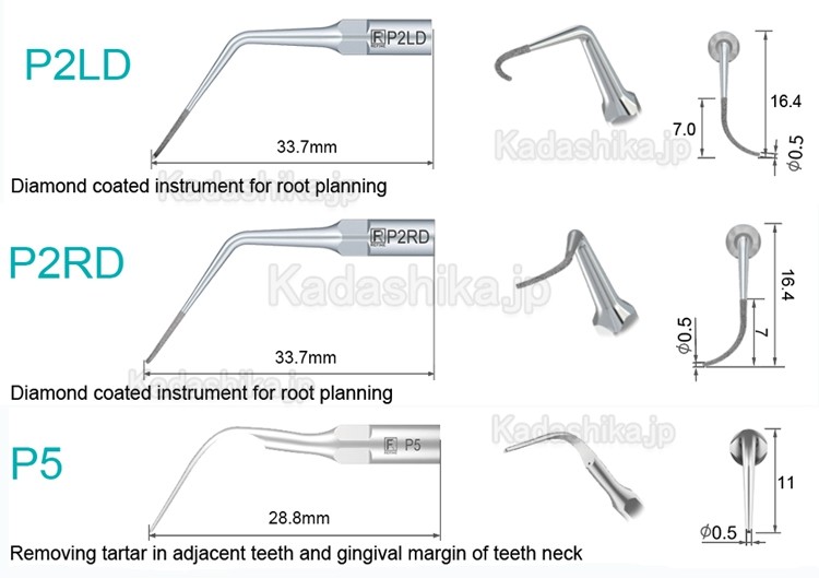 P2L、P2LD、P2R、P2RD、P5、P6、P7、P8、P10、P11、P12、P14L、P14R、P18、P20、P20L、P20R、P21L、P21R、P22L、P22R 歯科用スケーラーチップはREFINE EMS Woodpecker MECTRON VRN BOLAI 超音波スケーラーハンドピースに適用します。